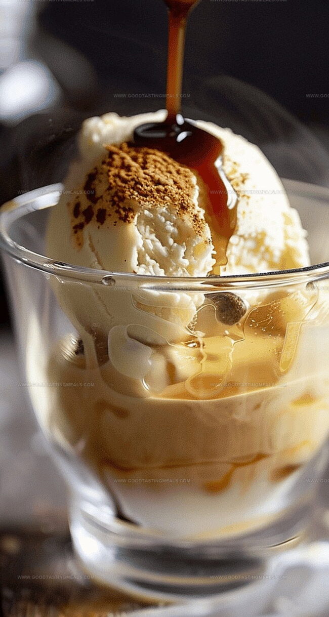 - Gracefully cascade the hot espresso directly over the cold ice cream, creating an instant melt and swirling effect that blends the coffee and cream.