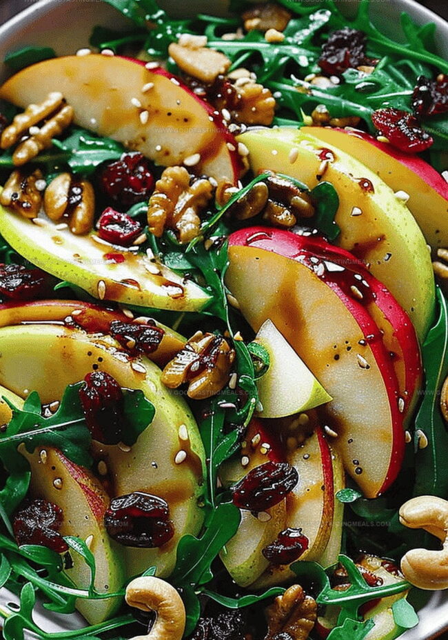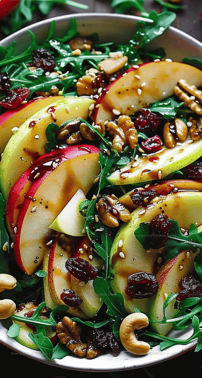 Arugula dances with vibrant orchard fruits in this refreshing culinary creation that reinvents simple ingredients into a spectacular dining experience.