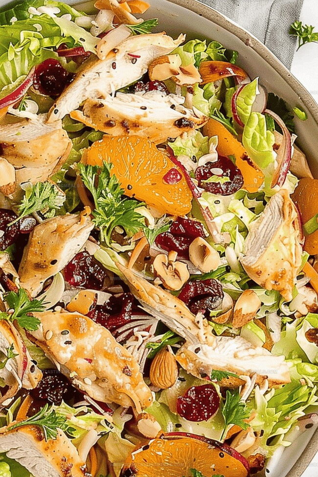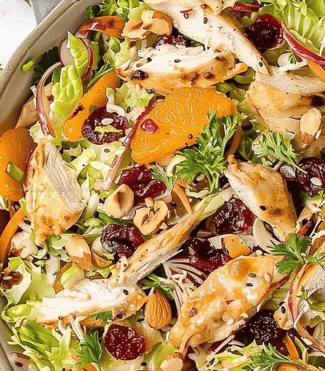 Zesty Asian chicken cranberry salad delivers a perfect harmony of tangy and sweet flavors. Crisp vegetables, tender chicken, and tart cranberries create a refreshing meal you’ll crave again and again.