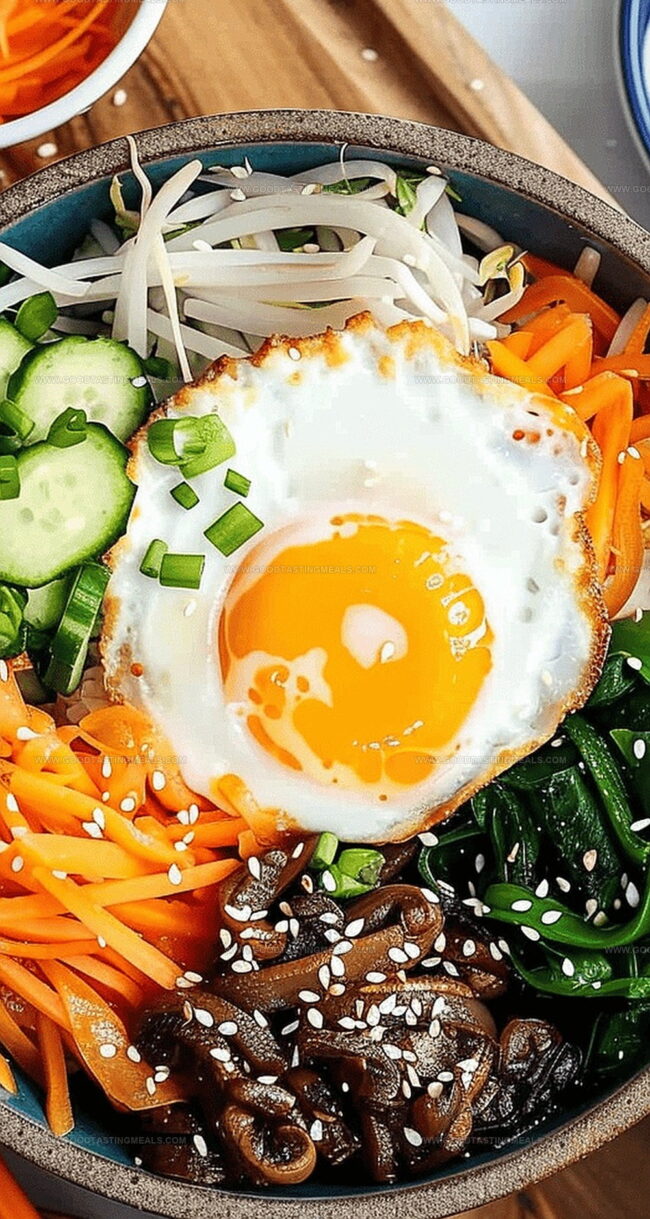 Sizzling rice, vibrant vegetables, and perfectly seasoned meat dance together in this authentic bibimbap recipe straight from Korean culinary traditions.