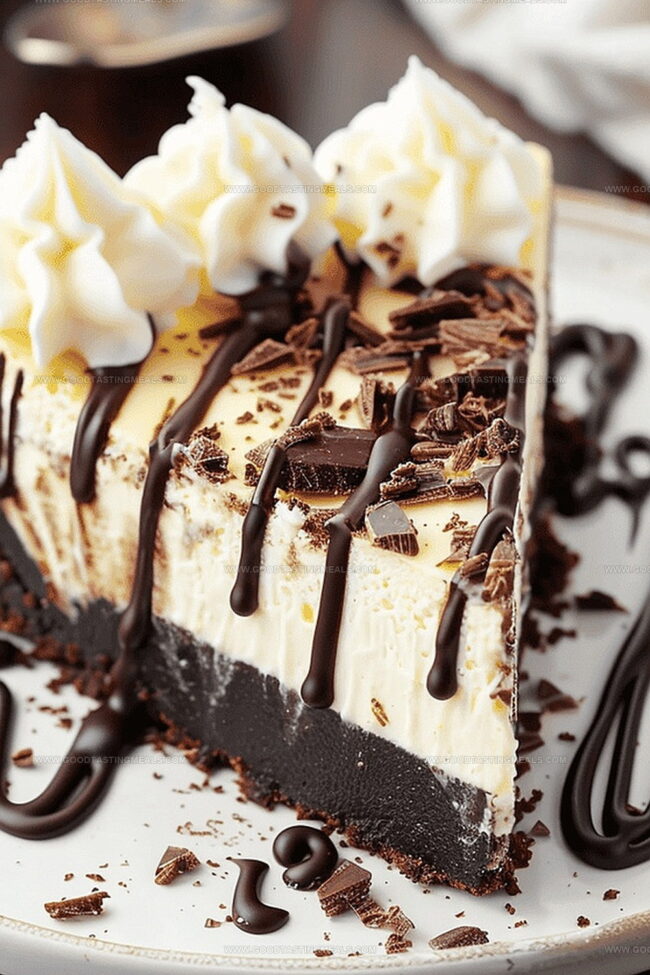 - Embellish the chilled cheesecake with freshly whipped cream and a decadent chocolate drizzle, then slice and indulge in the rich, multi-textured dessert.