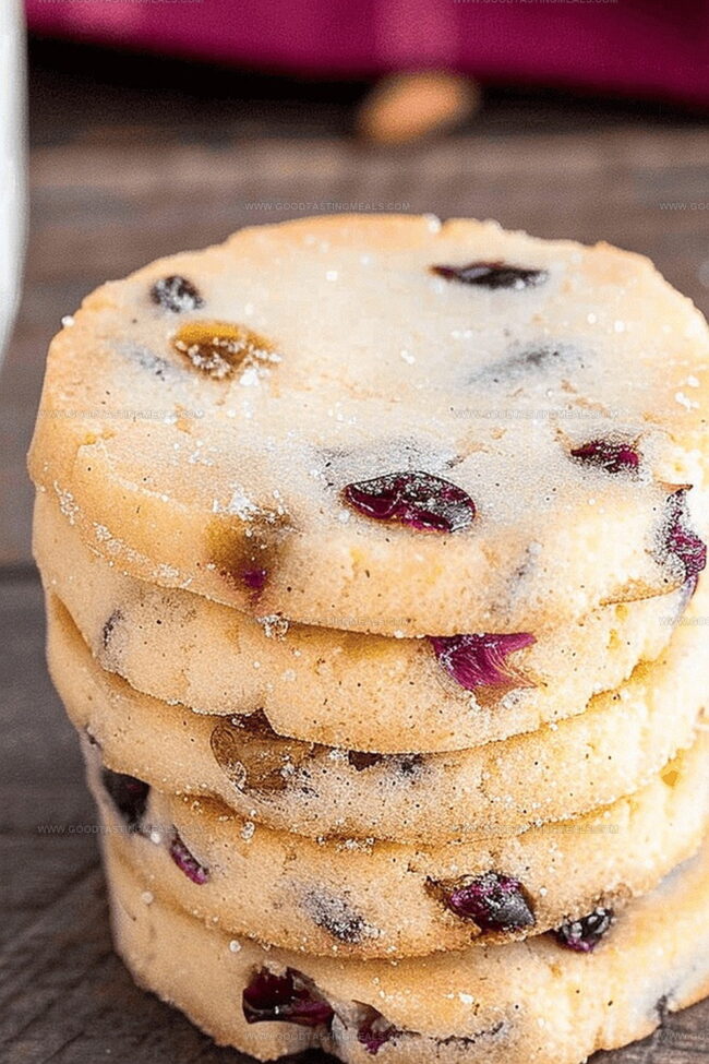 Delicate cranberry pistachio shortbread cookies combine festive flavors with buttery richness. Crisp edges and nutty undertones make these elegant treats perfect for holiday gatherings or quiet afternoon tea.