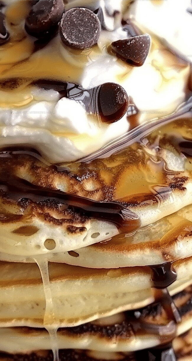 Stack warm pancakes on plate. Pipe chilled cannoli filling between layers. Optional: Drizzle with melted chocolate. Serve immediately and enjoy your delightful creation!