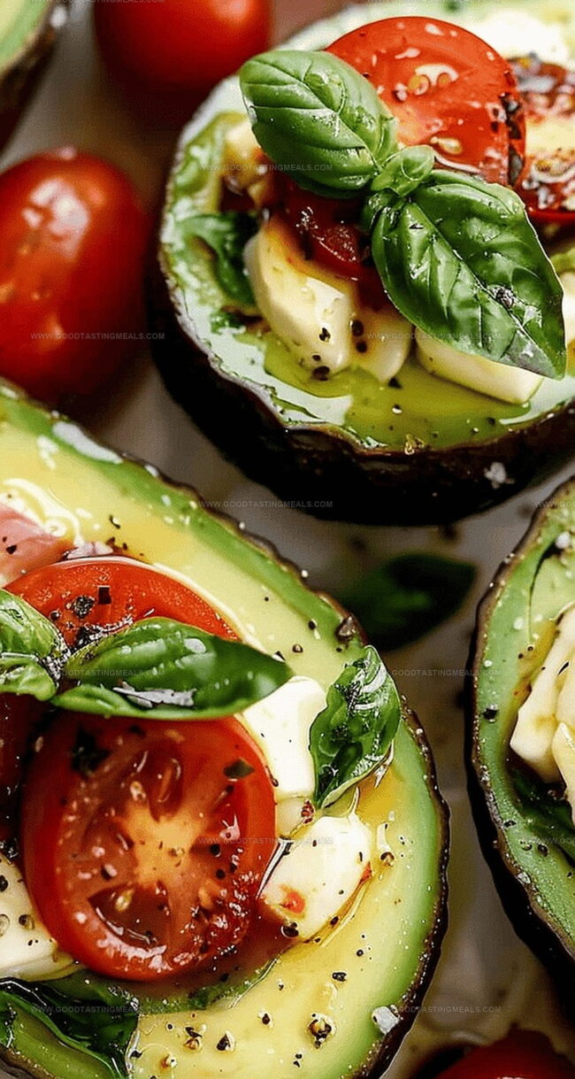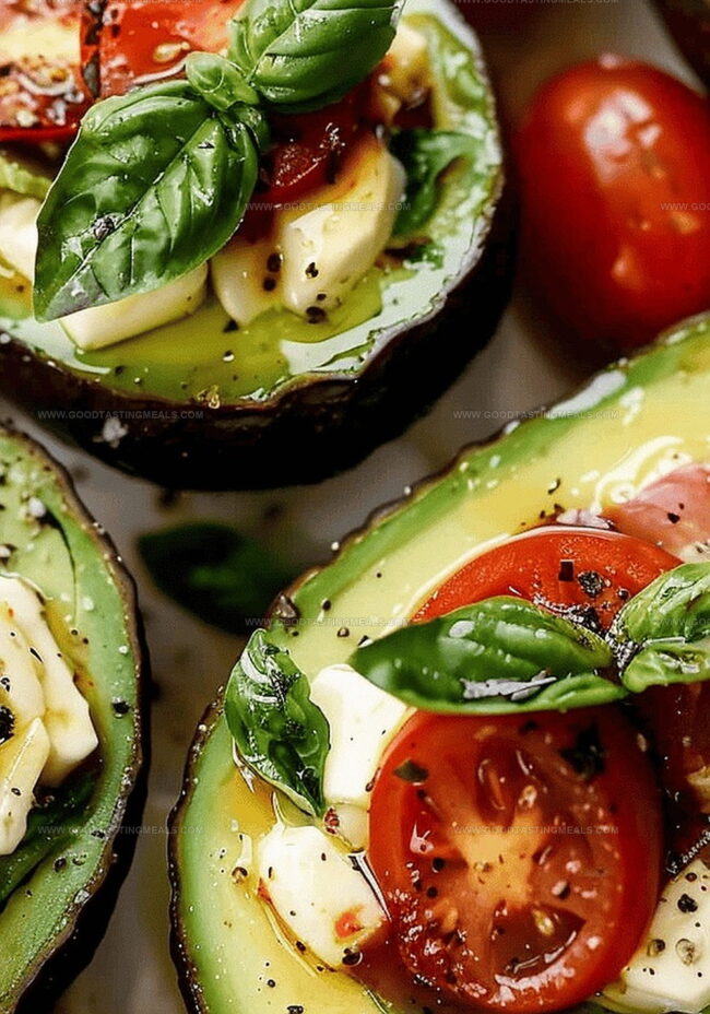 Fresh avocados revolutionize into a culinary canvas when paired with classic Caprese ingredients.