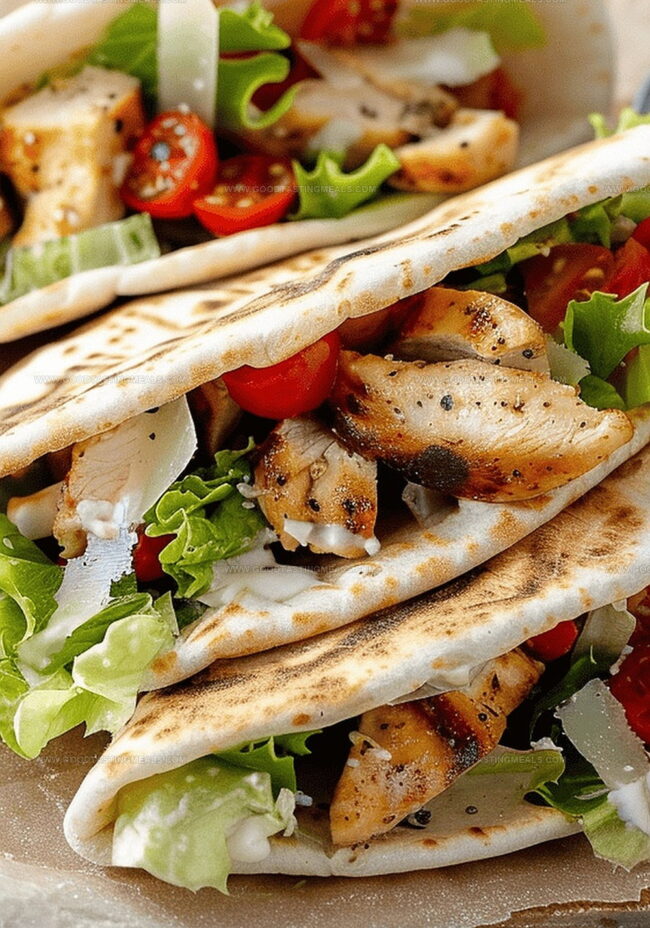 Zesty chicken caesar salad pitas bring Mediterranean flair to classic comfort cuisine. Crisp pita pockets stuffed with grilled chicken, romaine lettuce, and creamy caesar dressing offer a quick, satisfying meal you’ll crave again and again.