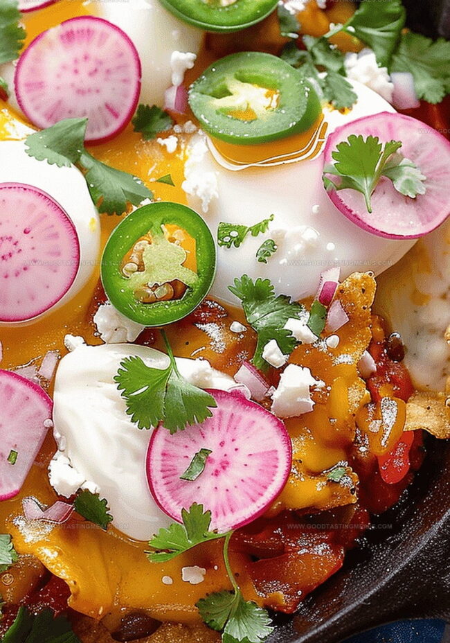 - Garnishing with fresh jalapeños, radishes, and cilantro adds bright, zesty contrast to the rich, cheesy base.