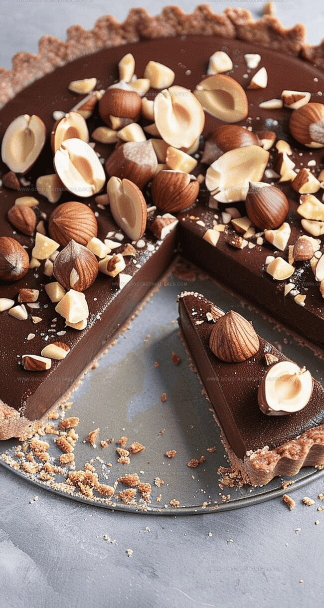 - Embellish the surface with a scattering of toasted hazelnuts, adding a crunchy textural contrast before presenting this decadent dessert.