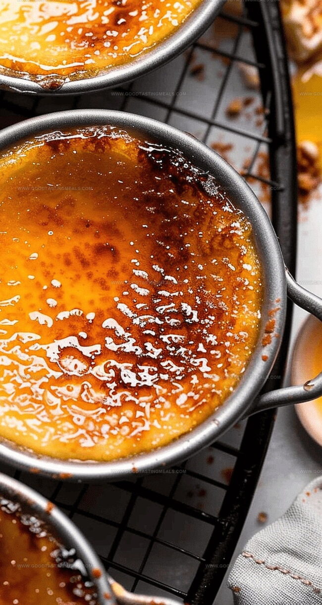 - Achieve the signature crackable sugar crust by evenly sprinkling sugar and using a kitchen torch for precise caramelization.
