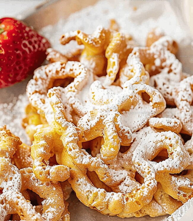 Crisp, golden funnel cake whisks carnival memories onto your plate with powdered sugar-dusted perfection. Delicate fried batter swirls create a nostalgic treat that brings sweet excitement to any dessert moment.