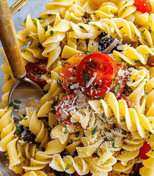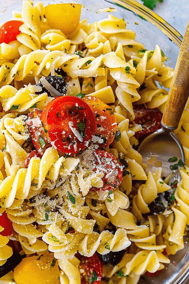 - Before serving, give the pasta salad a final gentle stir, taste once more, and make any last-minute seasoning adjustments.