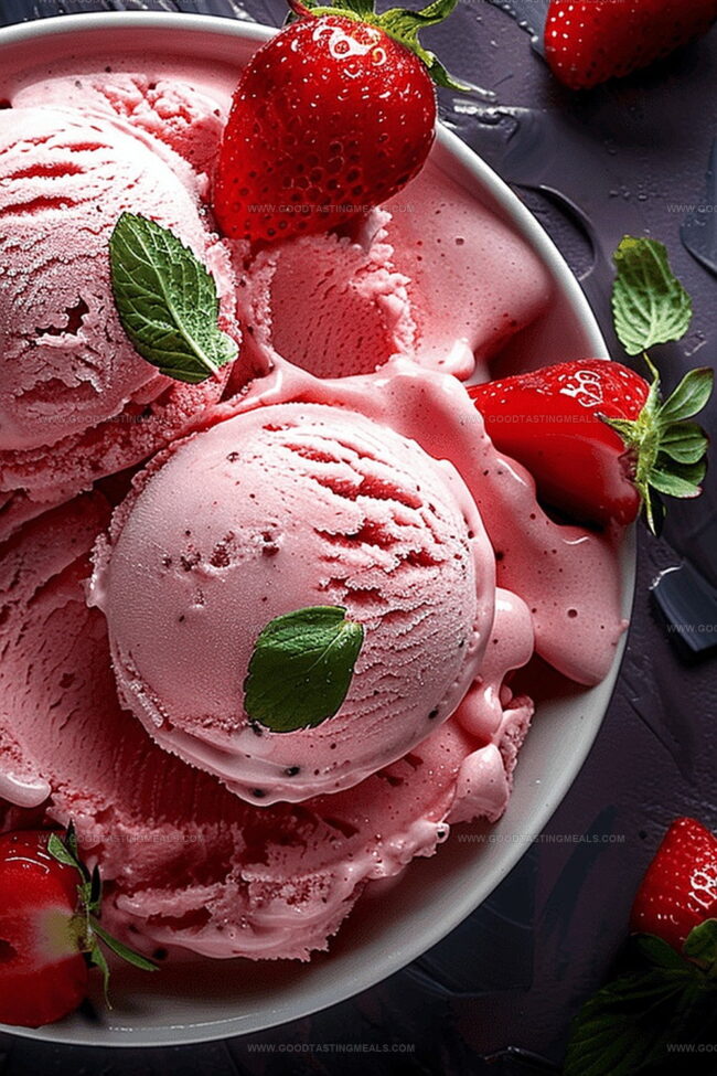 - Serve in chilled bowls or crisp waffle cones, garnishing with fresh strawberry slices if desired.