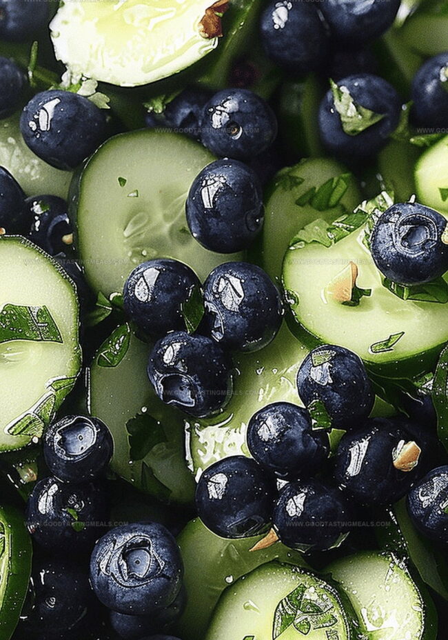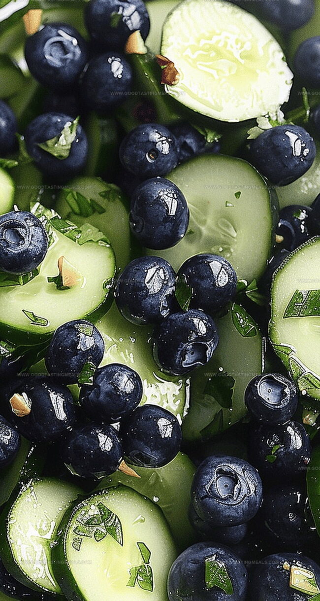 Crisp cucumbers mingle with juicy blueberries, creating a delightful contrast of textures and tastes.