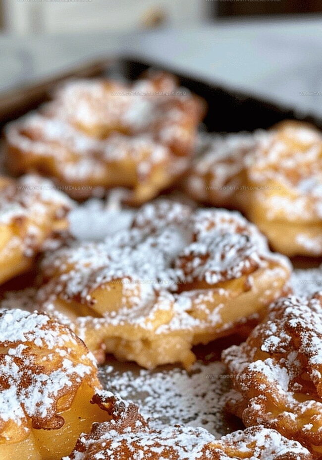 Allow fritters to cool slightly, then dust with a gentle snowfall of powdered sugar. The delicate white coating adds a whisper of sweetness and professional bakery-style presentation that makes these treats irresistible.