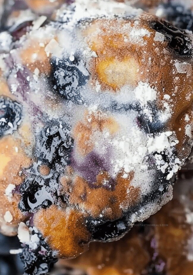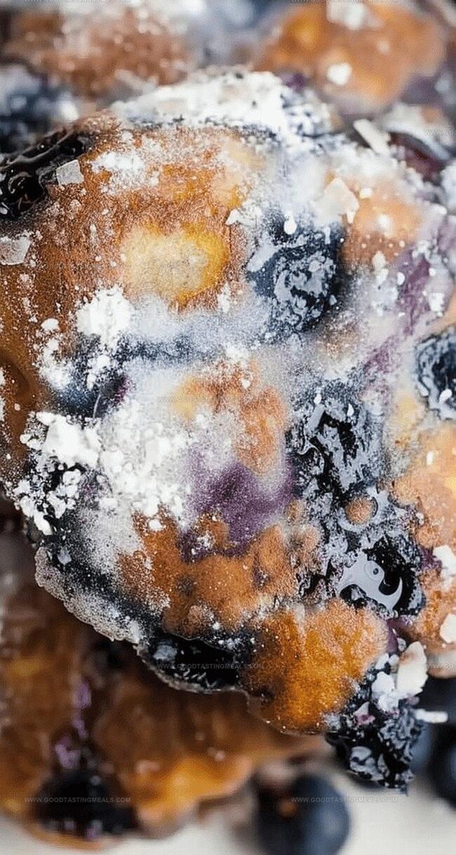 Crisp edges and tender centers showcase the magic of homemade fritters packed with juicy blueberries.
