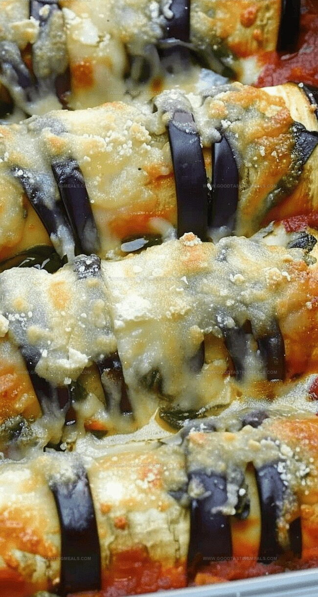 - Assembly: Spread a thin layer of tomato sauce in a baking dish. Generously spread the cheese mixture onto each eggplant slice, carefully roll, and position seam-side down in the prepared dish.