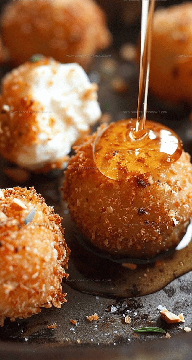 - Finishing Touch: Drain fried goat cheese on paper towels to remove excess oil. Drizzle with additional honey and garnish with optional red pepper flakes, chopped chives, or crushed pistachios for enhanced flavor and presentation.