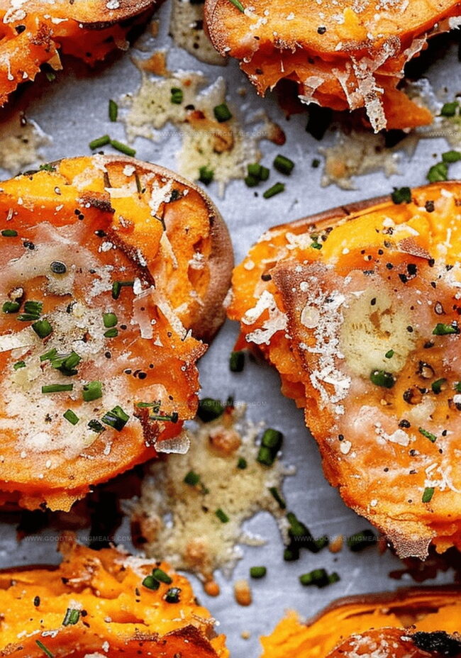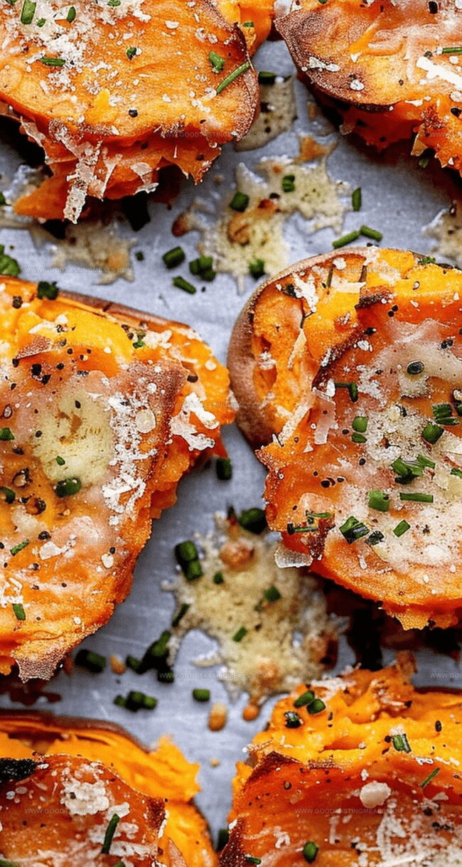 Cheesy Garlic Butter Smashed Sweet Potatoes Recipe