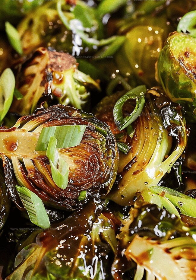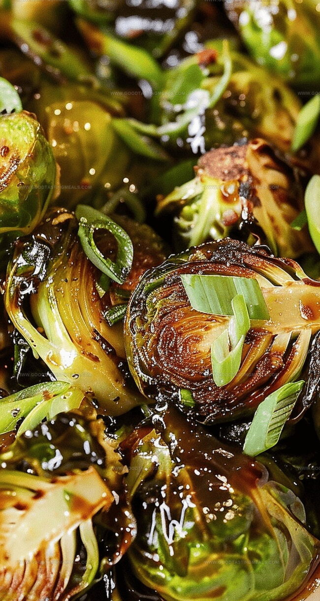 Pull sprouts from the oven and drizzle with the glossy sauce. Garnish with fresh green onions and a zesty sprinkle of lemon zest for a bright finish.