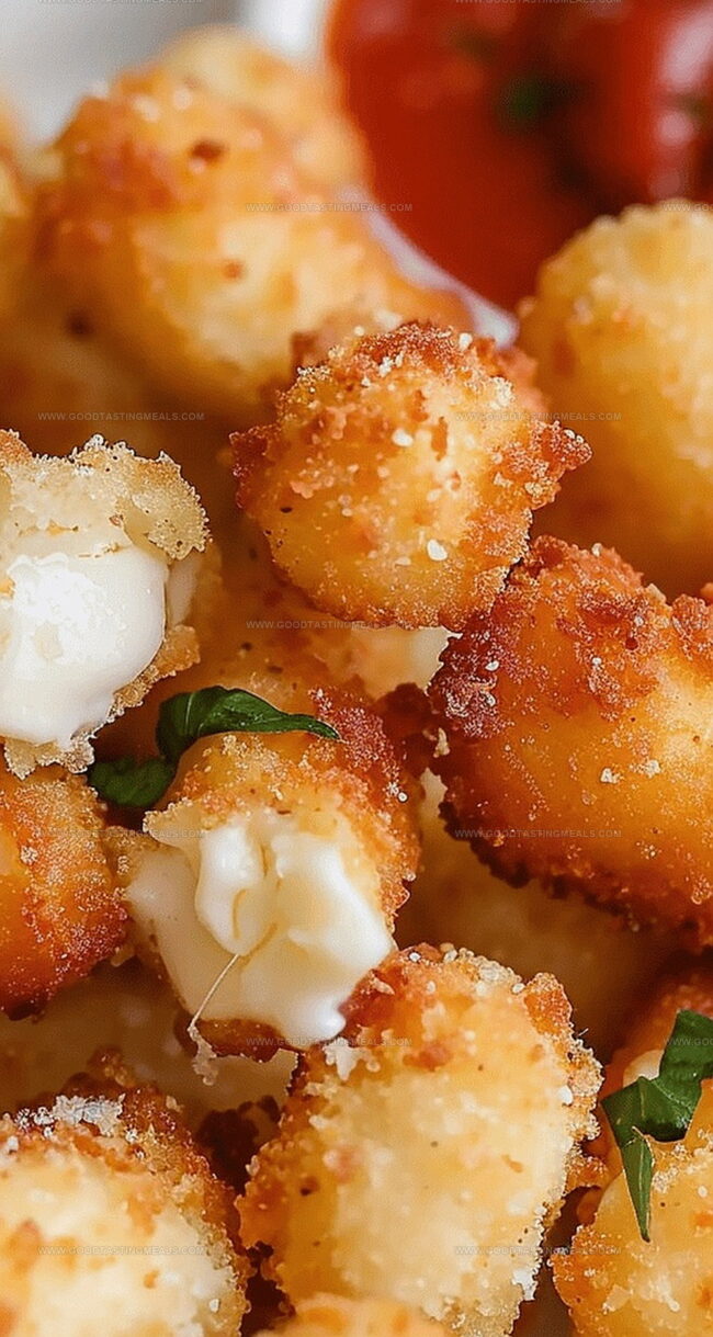 Dipping Delights: Pair these crispy mozzarella bites with a variety of zesty sauces like marinara, ranch, or spicy sriracha for an extra flavor kick.