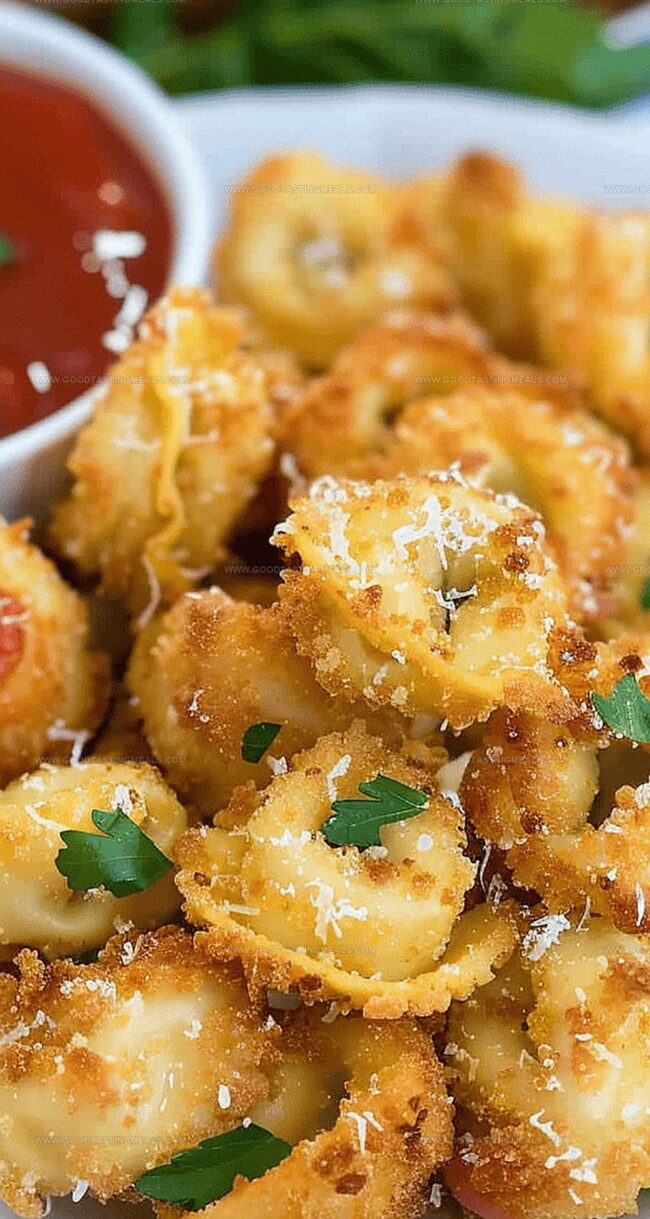 Crispy, golden-brown parmesan crusted tortellini bites deliver an irresistible appetizer that’s sure to steal the show at any gathering.