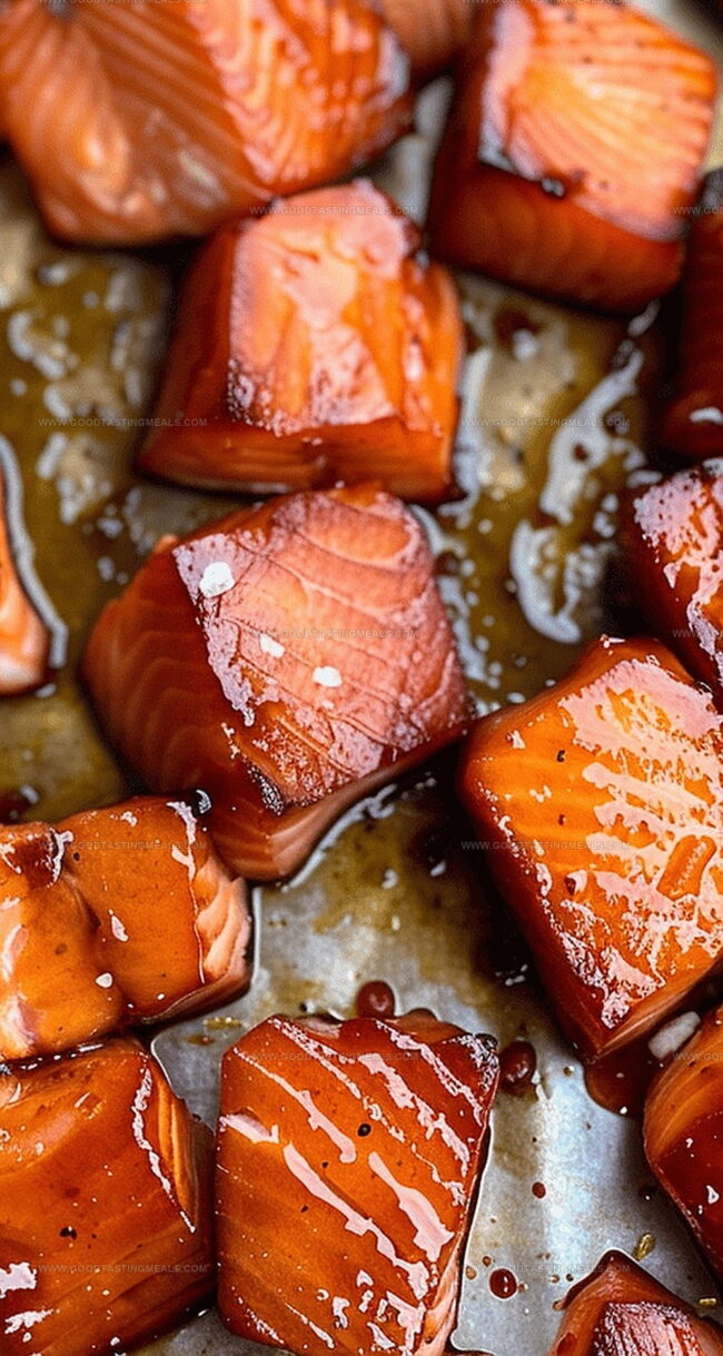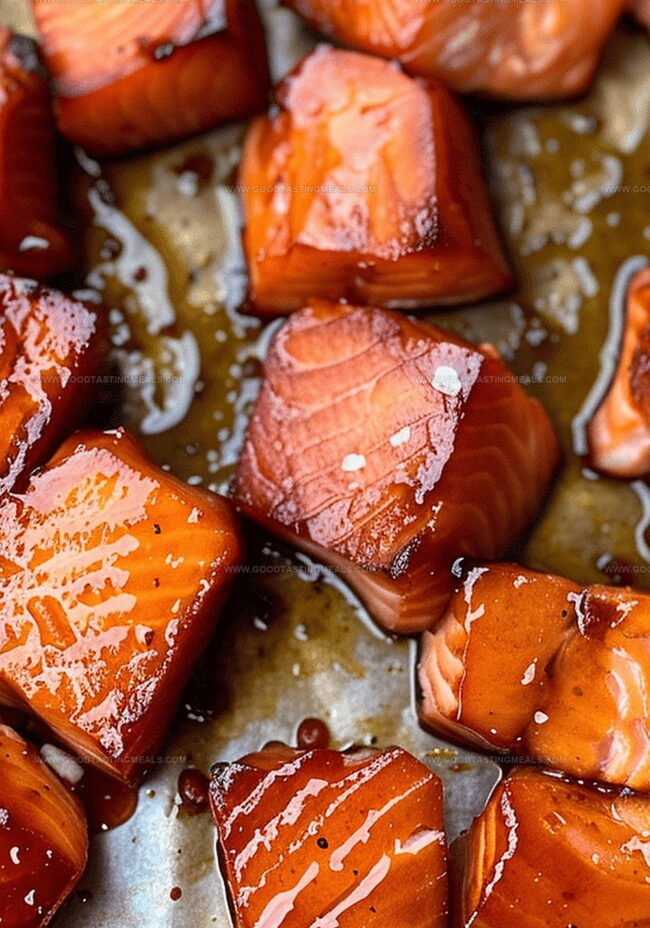 Tender salmon pieces caramelize beautifully, developing a glossy, golden exterior that promises pure indulgence.