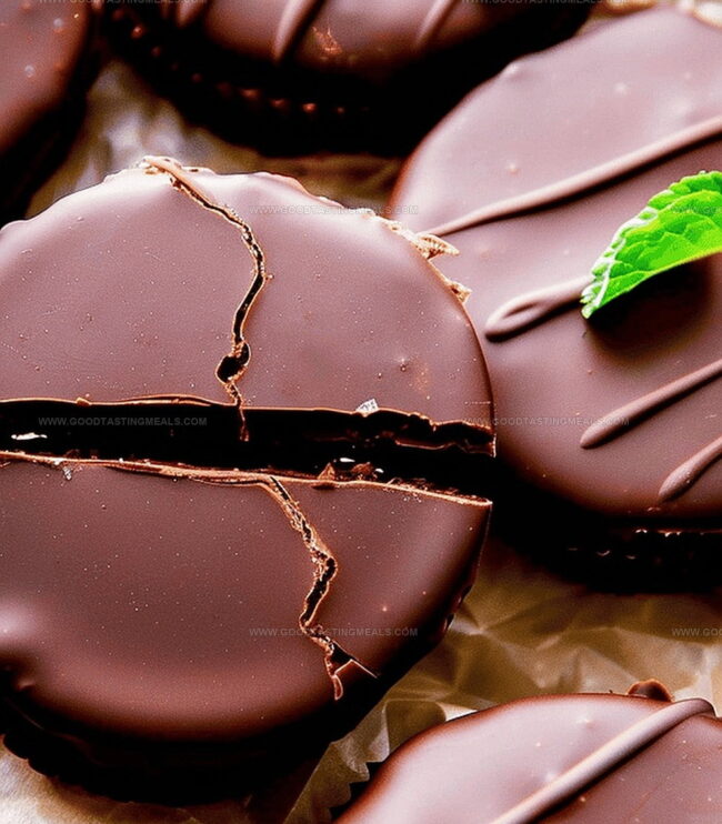 Classic homemade thin mint cookies combine peppermint and chocolate for an irresistible treat. Crisp chocolate wafers enrobed in smooth melted chocolate create a nostalgic dessert that promises pure deliciousness.