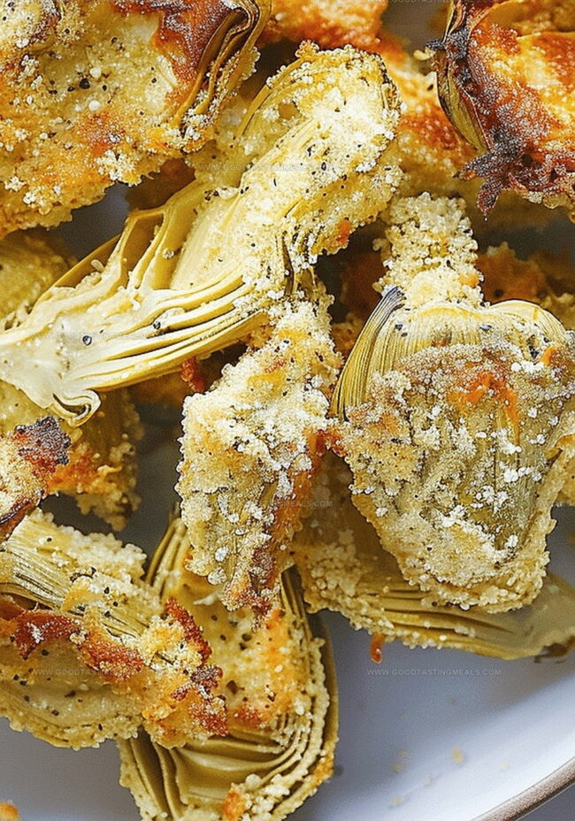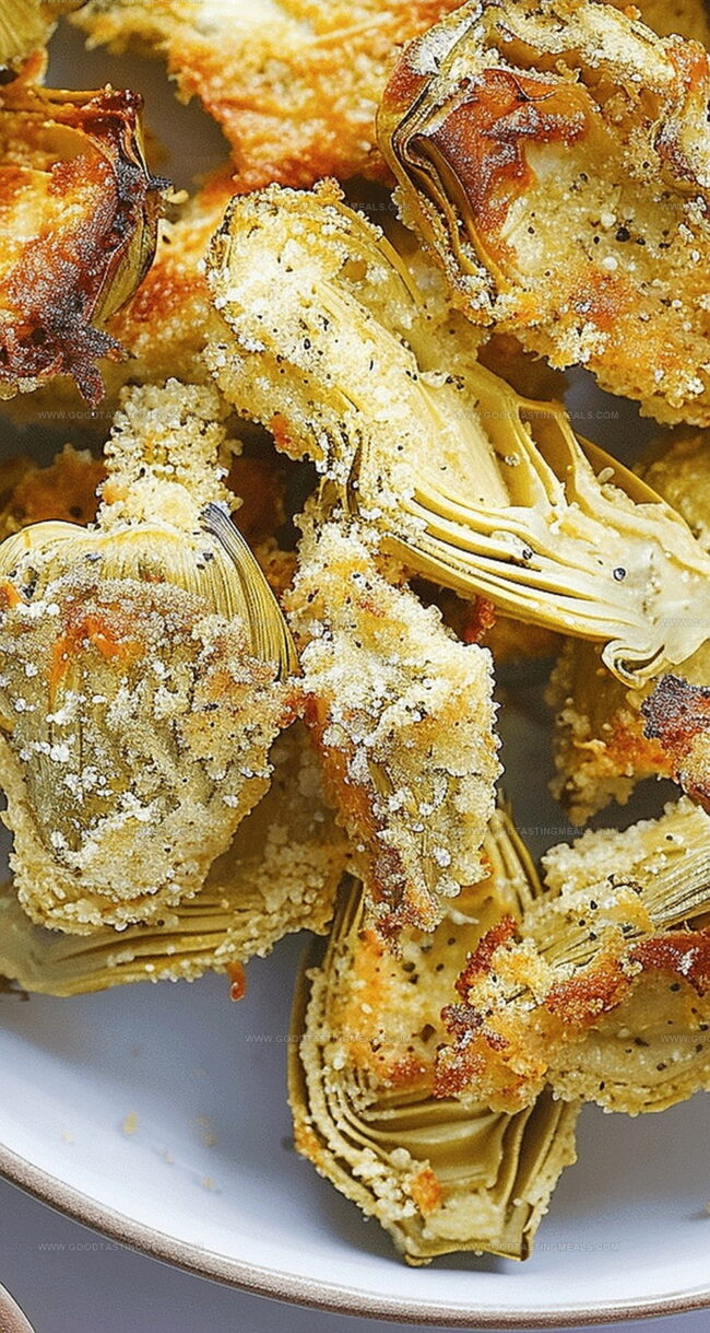 Tender artichoke hearts bathed in a golden parmesan coating bring an irresistible crunch to your dinner table.
