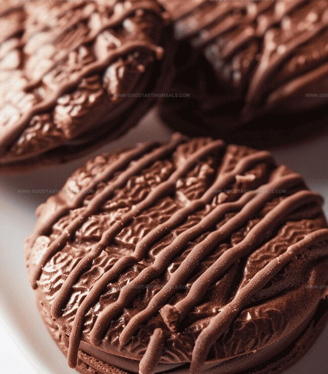 - Assemble the cookies by spreading a generous layer of filling between two cooled chocolate cookies.