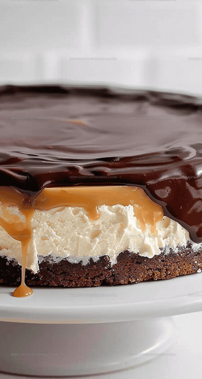 - Layer Assembly: Spread the velvety cheesecake mixture over the cooled crust, creating a uniform surface for the upcoming caramel and chocolate embellishments.