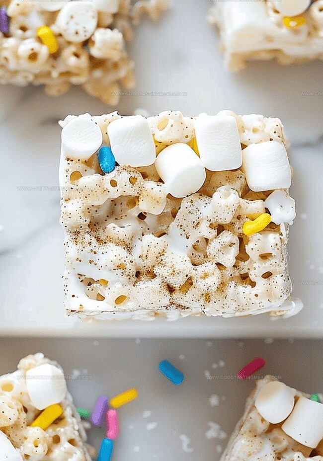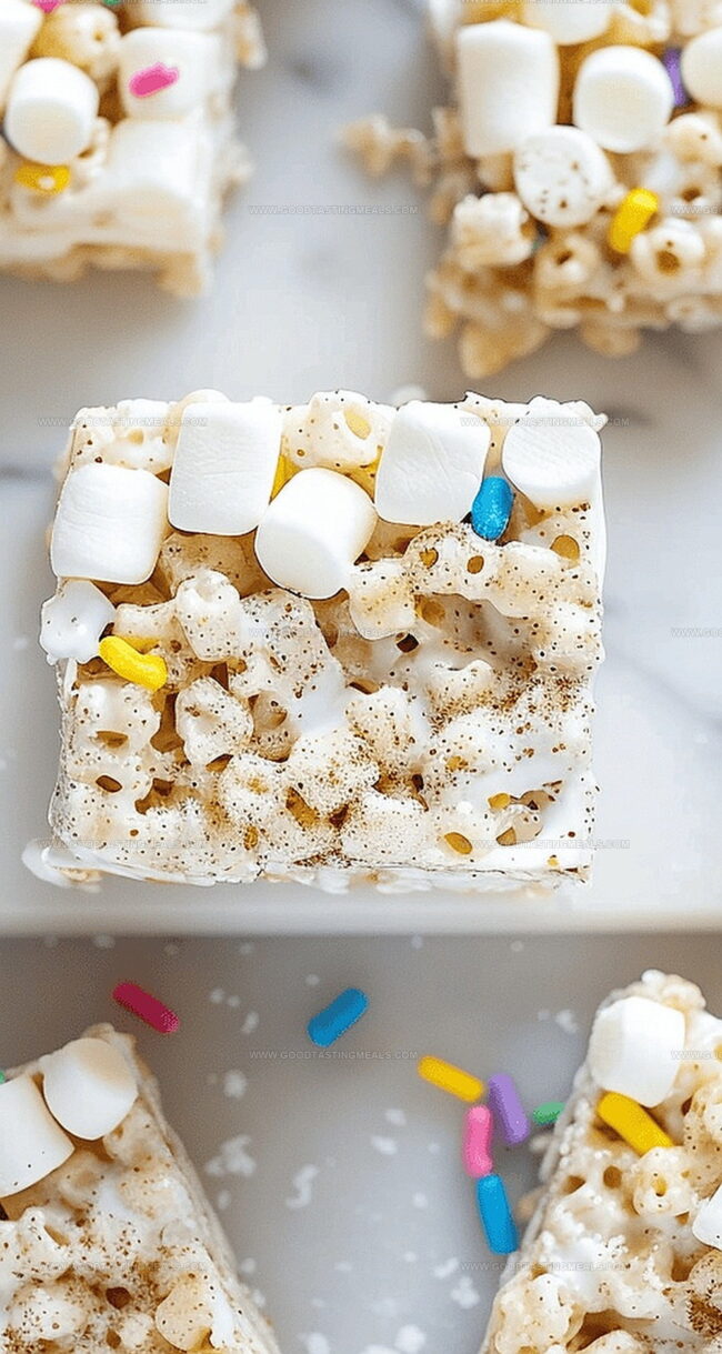Crispy cereal provides delightful crunch against the smooth, velvety marshmallow base, creating perfect textural harmony.