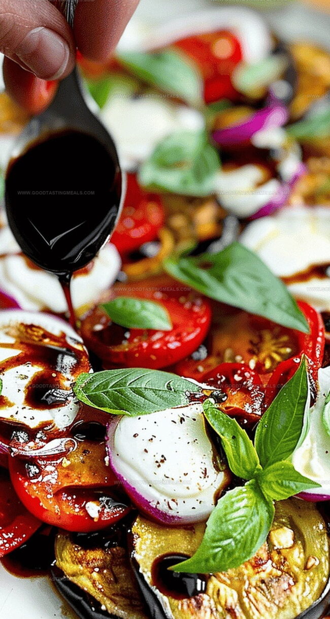 Arrange warm eggplant slices on a beautiful serving platter. Top each slice with:Step 5: Finish With Elegant Drizzle