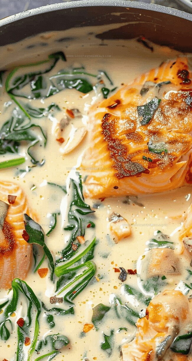 Tender salmon nestles into a dreamy, creamy sauce that whispers pure comfort.