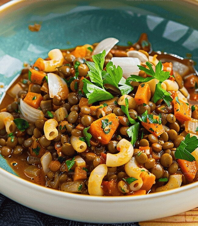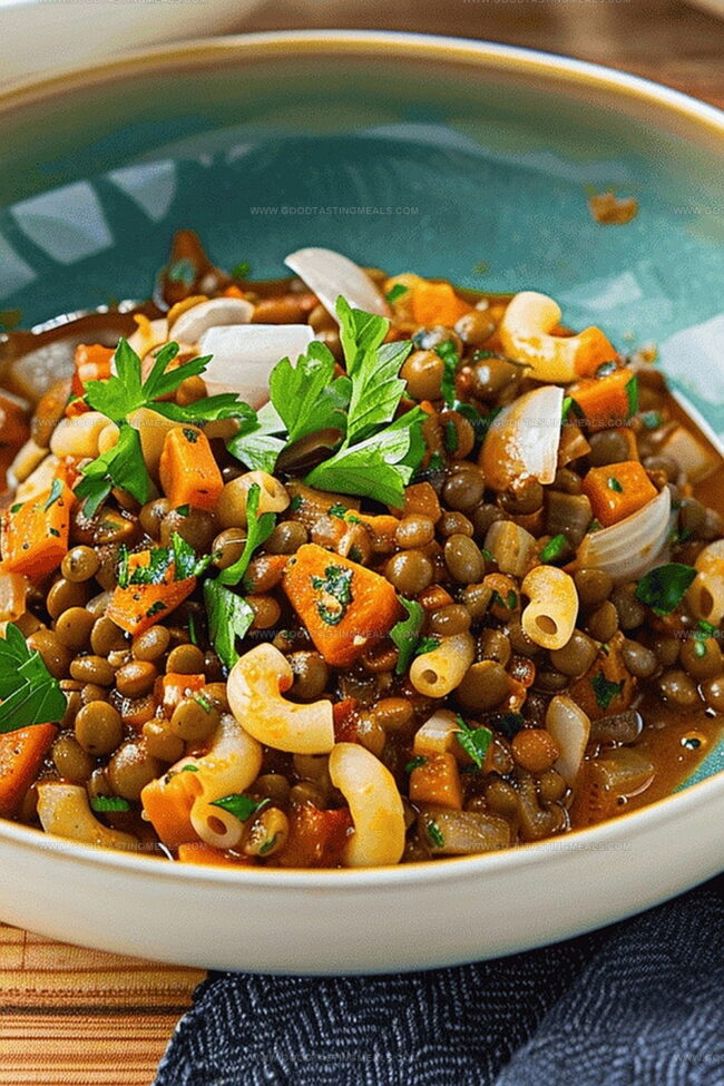 The combination of tender pasta and soft, creamy lentils offers a complex yet approachable dining experience that feels both familiar and exciting.