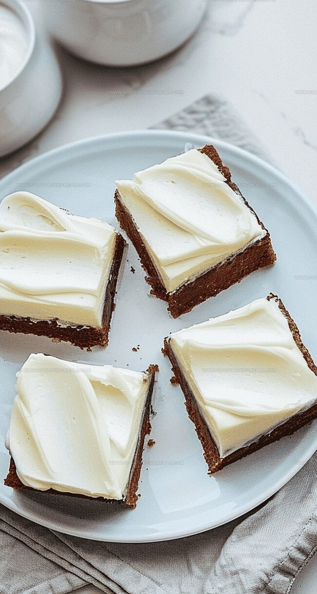 Finishing: Once bars reach room temperature, generously cover with cream cheese frosting, then slice into elegant squares and serve, or store in an airtight container.