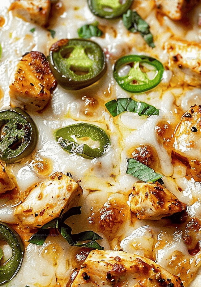 - Topping Assembly: Brush pre-baked crust with garlic-infused oil, meticulously arranging seasoned chicken, melting cheese, and zesty pickled jalapeño slices across the surface.