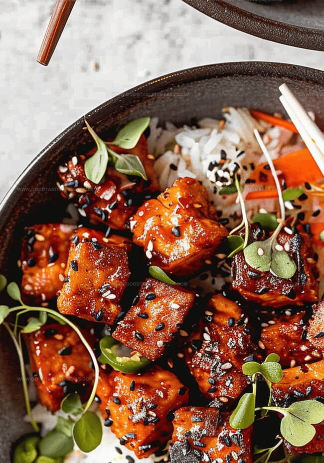 - Plating: Serve atop steamed rice, garnishing with sliced cucumber, carrots, avocado, and a sprinkle of sesame seeds, optionally accompanied by steamed broccoli for added nutrition and visual appeal.