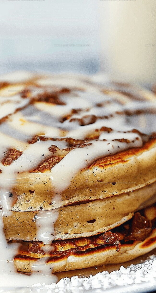 Present these indulgent pancakes immediately, allowing the warm glaze to cascade over the cinnamon swirls. Enjoy a breakfast that transforms an ordinary morning into a spectacular culinary experience.