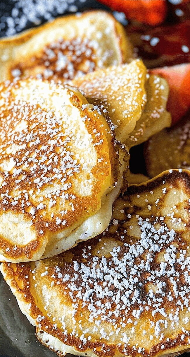 Slide the warm pancakes onto a plate and drizzle with maple syrup or your favorite fruity jam, letting the sweet toppings mingle with the soft, cheesy texture.