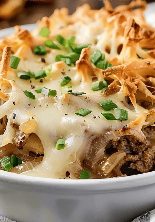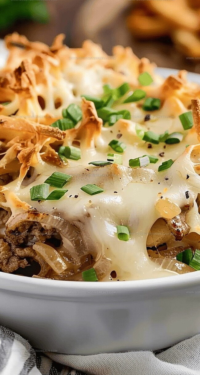 Protein Base:Pasta:Creamy Components:Cheese and Topping:Steps to Make French Onion Beef Casserole