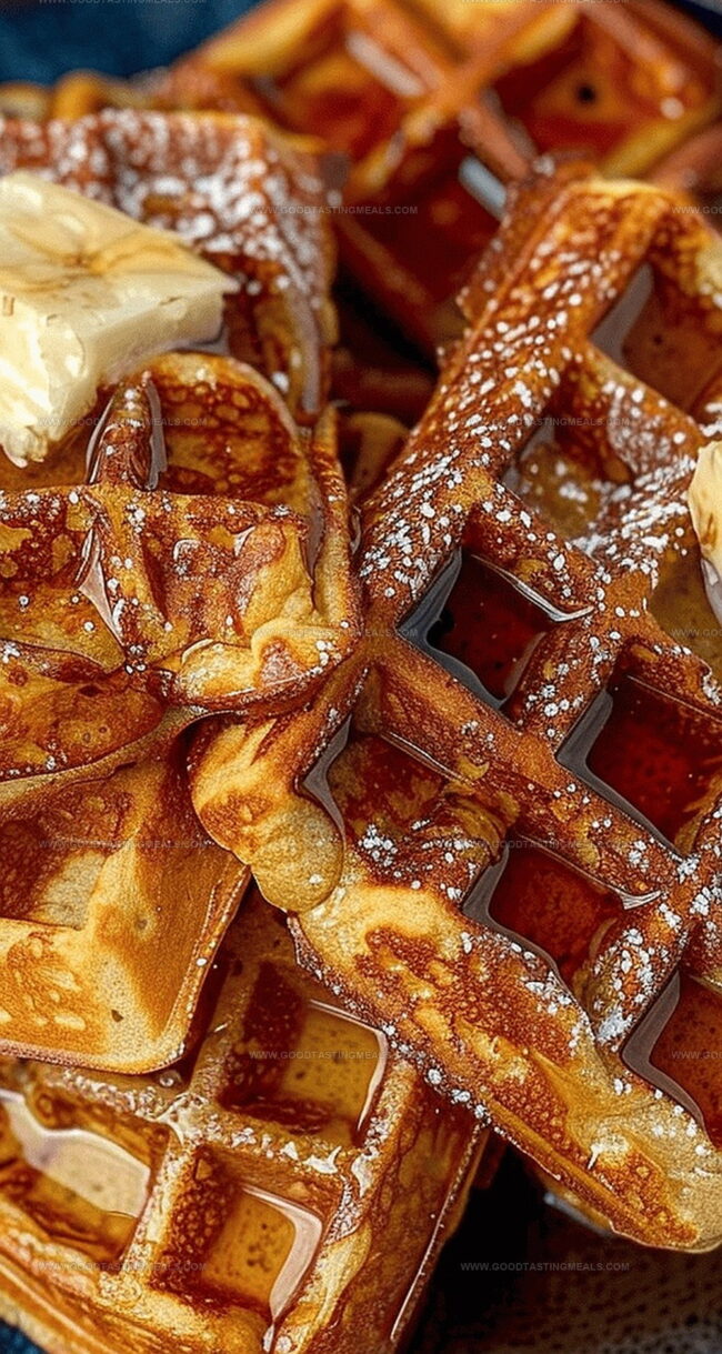 Crispy French toast waffles blend breakfast classics with ingenious creativity. Maple syrup and powdered sugar elevate this delightful morning treat, making breakfast feel like a special indulgence you’ll crave again and again.