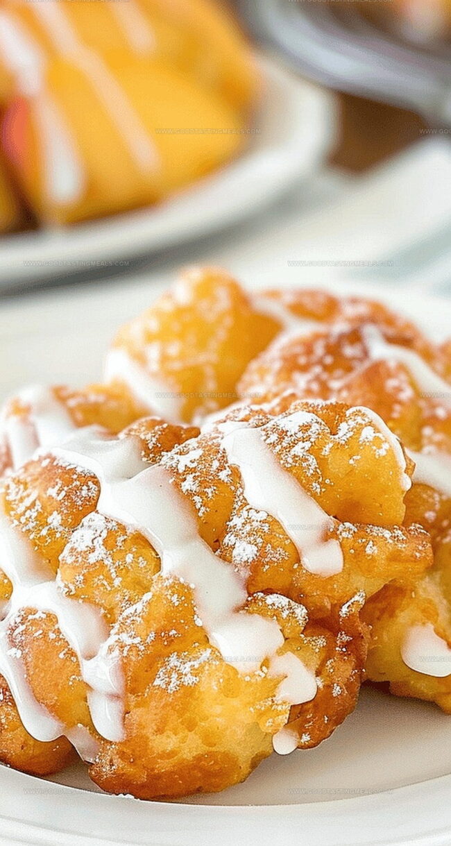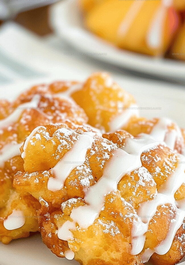 Drizzle glaze over warm fritters or dust with powdered sugar or granulated sugar. Serve immediately for the best taste and texture.