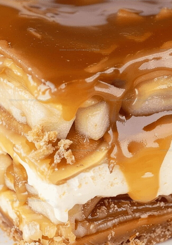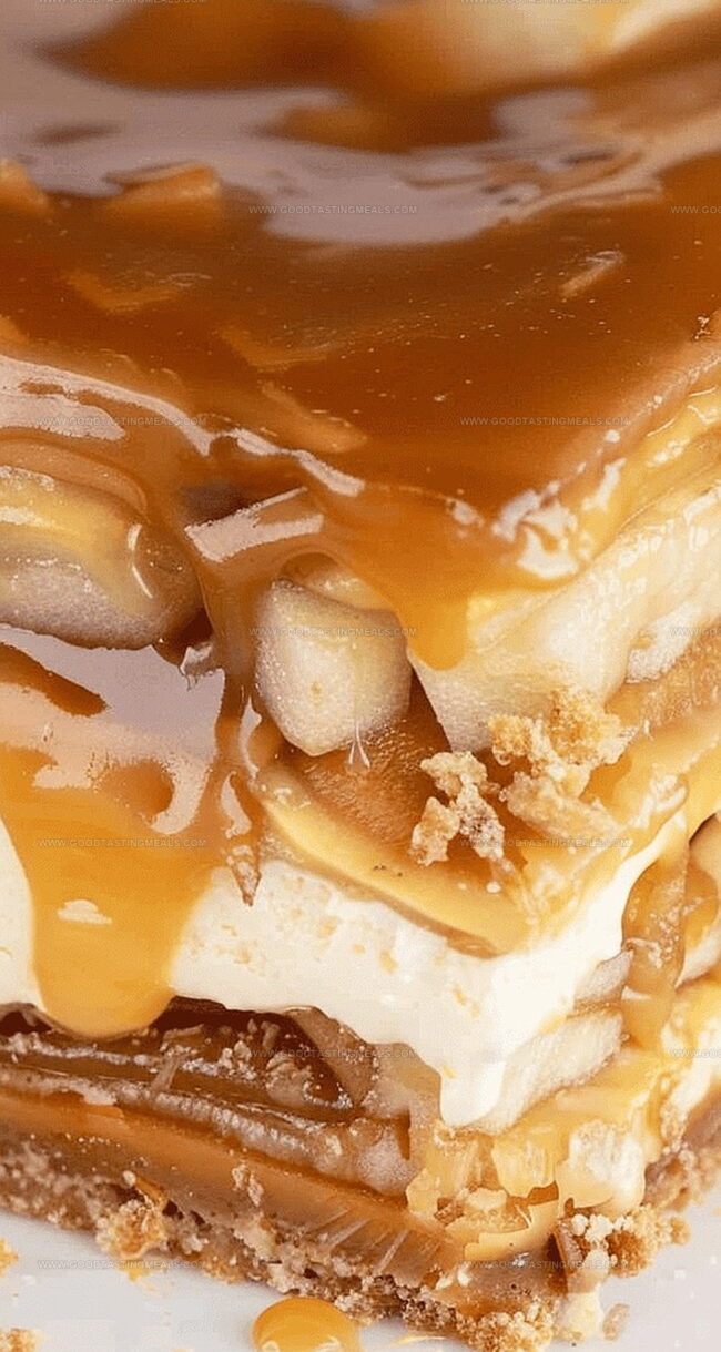 - Finish with Caramel Glaze: Warm caramel sauce in short microwave intervals, then drizzle and spread evenly across the top layer for an attractive finishing touch.
