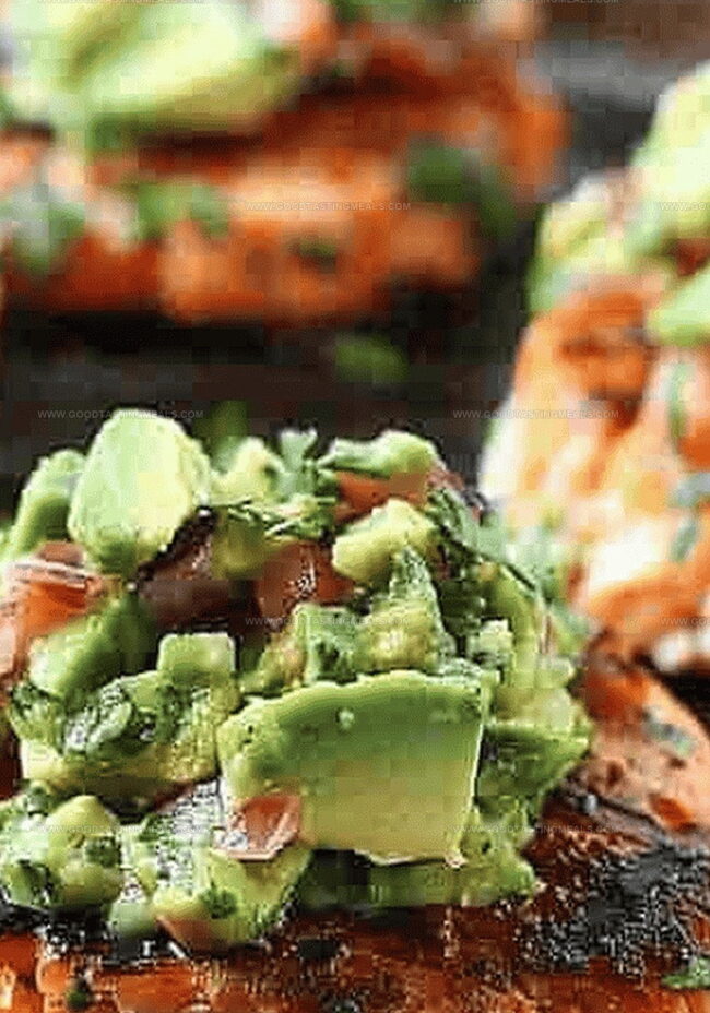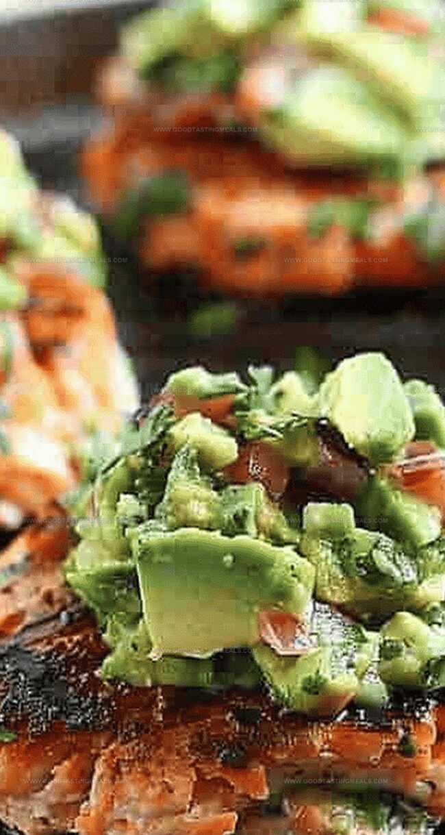 - Once the salmon burgers are perfectly grilled, transfer them to serving plates and crown each with a generous dollop of fresh avocado salsa.