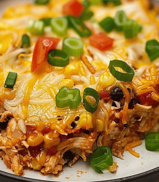 Mexican-inspired chicken taco casserole delivers a zesty explosion of flavors for family dinner nights. Layers of tender chicken, crisp tortillas, melted cheese, and spicy seasonings create a hearty meal you’ll crave again and again.