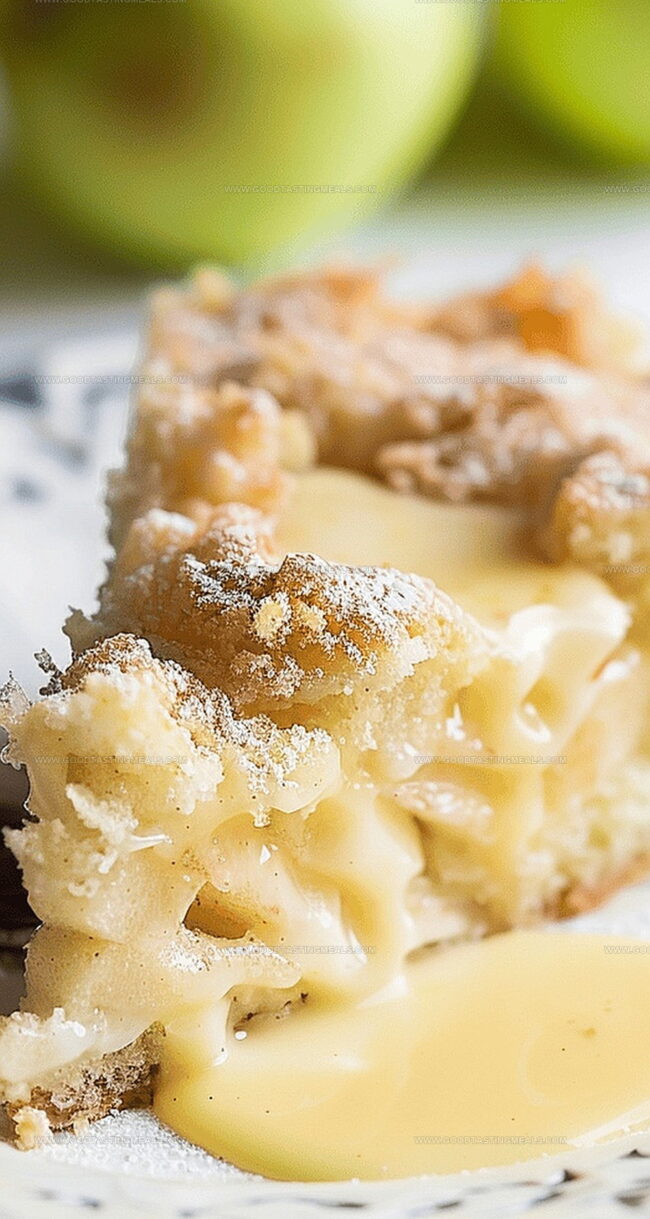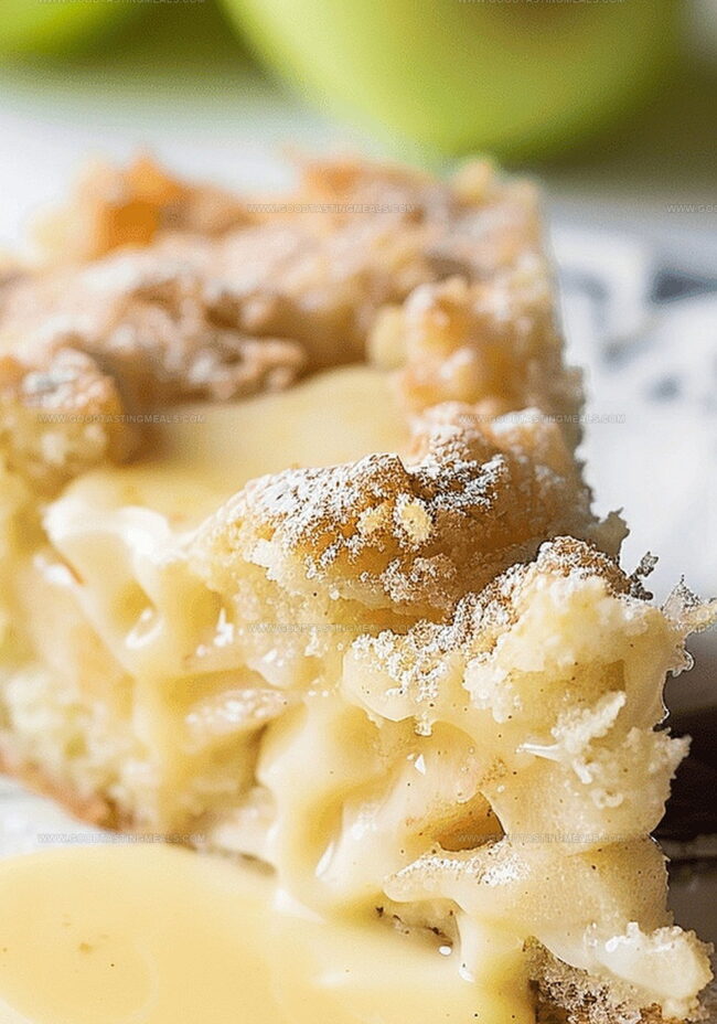 Cut generous slices and present this stunning Irish apple cake. Each bite promises a harmony of tender cake, sweet apples, and creamy custard.