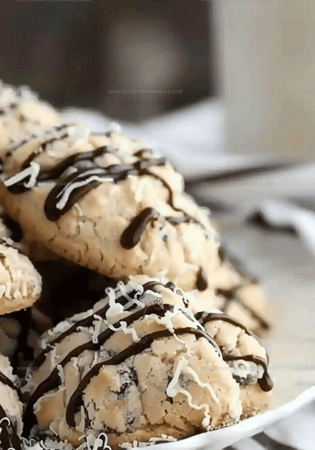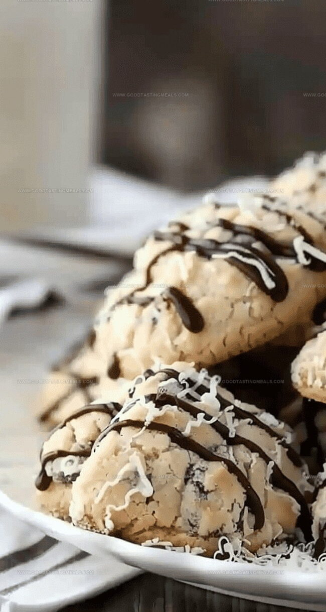 - Allow cookies to cool completely before drizzling chocolate to prevent melting and maintain clean lines.