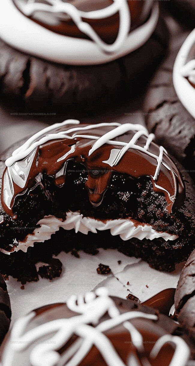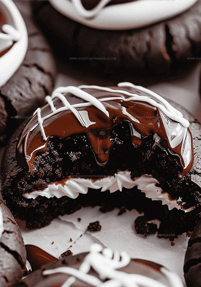 - Assemble cookies by generously piping marshmallow frosting onto cooled base. Layer chocolate ganache strategically, creating elegant swirled effect.