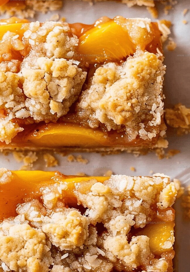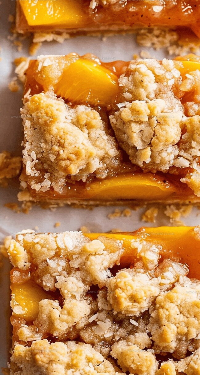 Tender fruit ribbons weave through a crumbly oat topping, making each square a celebration of seasonal deliciousness.