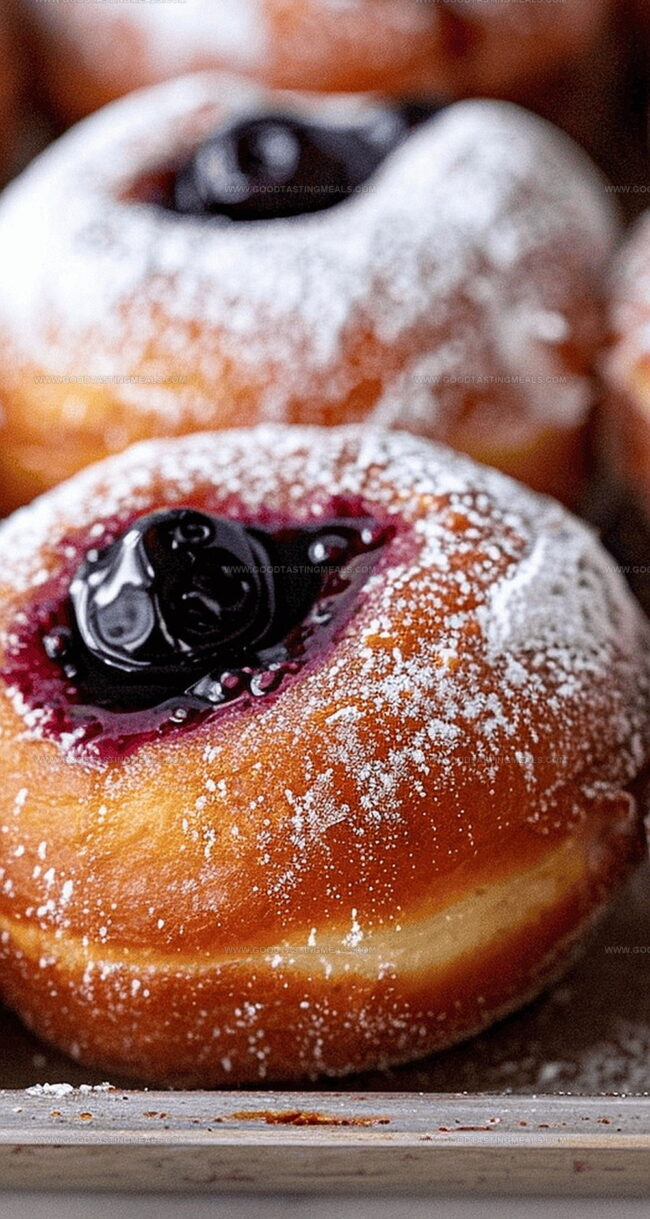 Soft, pillowy doughnuts infused with balsamic blueberry and cheesecake filling bring a delightful twist to your dessert repertoire.