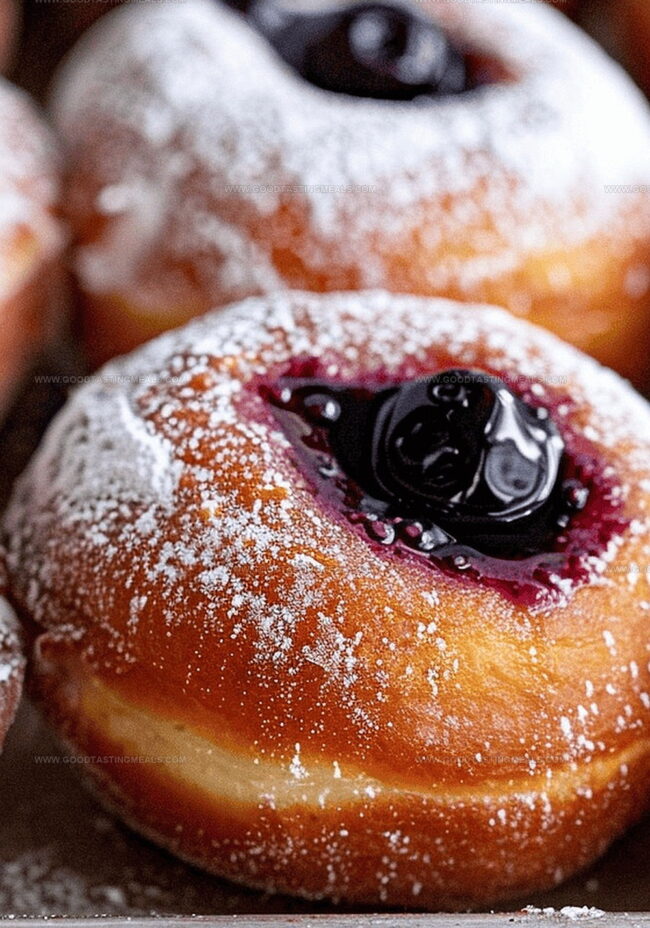 - Filling and Garnishing: Utilize piping bags with medium round tips to strategically inject balsamic blueberry mixture deep into each doughnut, followed by cheesecake filling until the pastries feel substantial, concluding with an elegant dollop on top.
